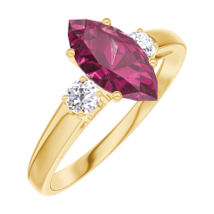 Anillo Oro amarillo 18 quilates - Rubí Marquesa 0.7 quilates - Piedras laterales Diamante