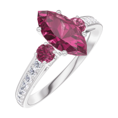 Anillo Oro blanco 18 quilates - Rubí Marquesa 0.7 quilates - Piedras laterales Rubí - Engastado Diamante