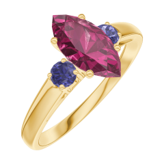 Anillo Oro amarillo 9 quilates - Rubí Marquesa 0.7 quilates - Piedras laterales Zafiro azul