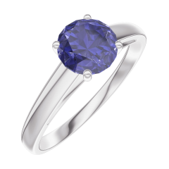 Anillo Oro blanco 9 quilates - Zafiro azul redondo 0.7 quilates