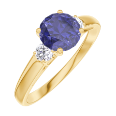 Anillo Oro amarillo 18 quilates - Zafiro azul redondo 0.7 quilates - Piedras laterales Diamante
