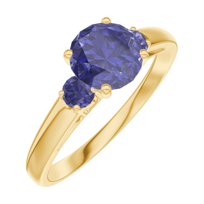 « L'ATELIER » Nº166062Anillo Oro amarillo 9 quilates - Zafiro azul redondo 0.7 quilates - Piedras laterales Zafiro azul 5