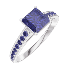 Anillo Oro blanco 9 quilates - Zafiro azul Princesa 0.7 quilates - Engastado Zafiro azul