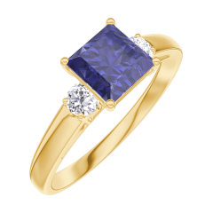 « L'ATELIER » N.º 166121Anillo Oro amarillo 18 quilates - Zafiro azul Princesa 0.7 quilates - Piedras laterales Diamante