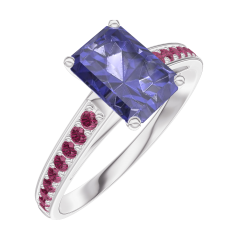 Anillo Oro blanco 9 quilates - Zafiro azul Rectángulo 0.7 quilates - Engastado Rubí
