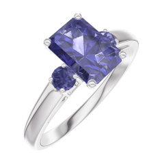 Anillo Oro blanco 18 quilates - Zafiro azul Rectángulo 0.7 quilates - Piedras laterales Zafiro azul