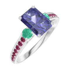 « L'ATELIER » N.º 166291Anillo Oro blanco 18 quilates - Zafiro azul Rectángulo 0.7 quilates - Piedras laterales Esmeralda - Engastado Rubí