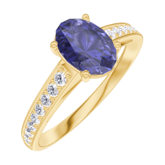 Anillo Oro amarillo 18 quilates - Zafiro azul Ovalo 0.7 quilates - Engastado Diamante