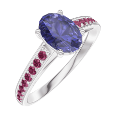 Anillo Oro blanco 9 quilates - Zafiro azul Ovalo 0.7 quilates - Engastado Rubí