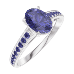 Anillo Oro blanco 18 quilates - Zafiro azul Ovalo 0.7 quilates - Engastado Zafiro azul