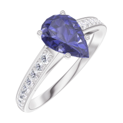 Anillo Oro blanco 18 quilates - Zafiro azul Pera 0.7 quilates - Engastado Diamante
