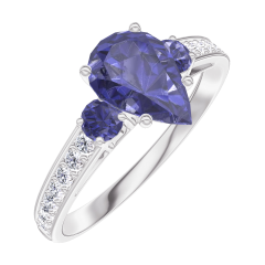 Anillo Oro blanco 9 quilates - Zafiro azul Pera 0.7 quilates - Piedras laterales Zafiro azul - Engastado Diamante