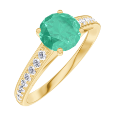 Anillo Oro amarillo 9 quilates - Esmeralda redondo 0.7 quilates - Engastado Diamante