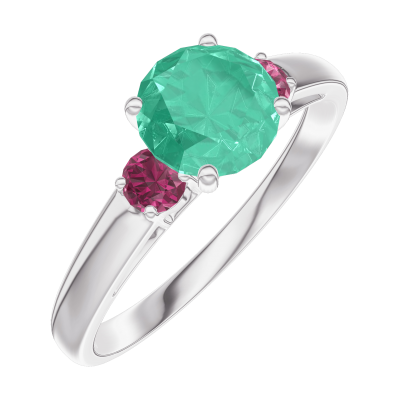 « L'ATELIER » Nº166644Anillo Oro blanco 9 quilates - Esmeralda redondo 0.7 quilates - Piedras laterales Rubí 5