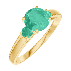 Anillo Oro amarillo 18 quilates - Esmeralda redondo 0.7 quilates - Piedras laterales Esmeralda