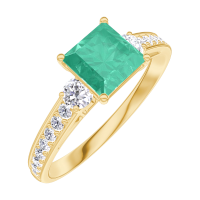 « L'ATELIER » Nº166726Anillo Oro amarillo 9 quilates - Esmeralda Princesa 0.7 quilates - Piedras laterales Diamante - Engastado Diamante