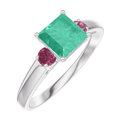 « L'ATELIER » Nº166744Anillo Oro blanco 9 quilates - Esmeralda Princesa 0.7 quilates - Piedras laterales Rubí