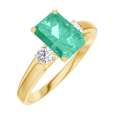« L'ATELIER » N.º 166821Anillo Oro amarillo 18 quilates - Esmeralda Rectángulo 0.7 quilates - Piedras laterales Diamante