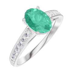 Anillo Oro blanco 18 quilates - Esmeralda Ovalo 0.7 quilates - Engastado Diamante