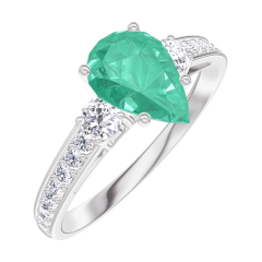 Anillo Oro blanco 9 quilates - Esmeralda Pera 0.7 quilates - Piedras laterales Diamante - Engastado Diamante
