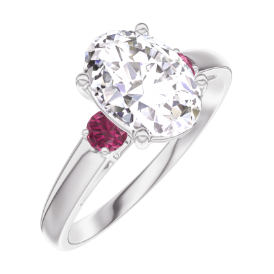 « L'ATELIER » Nº167544Anillo Oro blanco 9 quilates - Diamante Ovalo 1 quilates - Piedras laterales Rubí 4.8