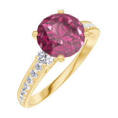 Anillo Oro amarillo 9 quilates - Rubí redondo 1 quilates - Piedras laterales Diamante - Engastado Diamante