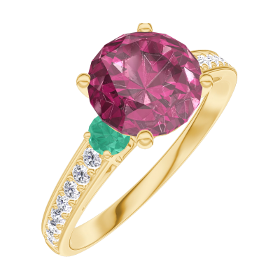 « L'ATELIER » N.º 167885Anillo Oro amarillo 18 quilates - Rubí redondo 1 quilates - Piedras laterales Esmeralda - Engastado Diamante 4.9