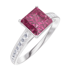 Anillo Oro blanco 18 quilates - Rubí Princesa 1 quilates - Engastado Diamante