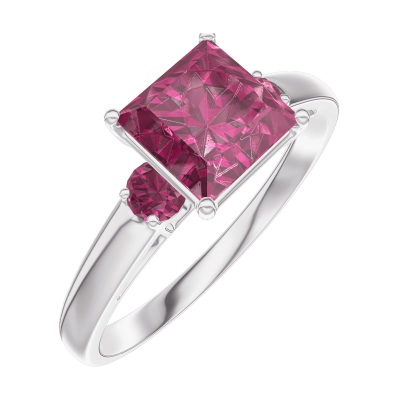 « L'ATELIER » N.º 167944Anillo Oro blanco 9 quilates - Rubí Princesa 1 quilates - Piedras laterales Rubí