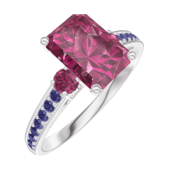 Anillo Oro blanco 18 quilates - Rubí Rectángulo 1 quilates - Piedras laterales Rubí - Engastado Zafiro azul