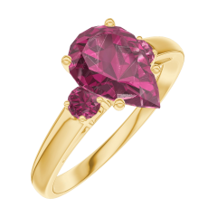 Anillo Oro amarillo 18 quilates - Rubí Pera 1 quilates - Piedras laterales Rubí