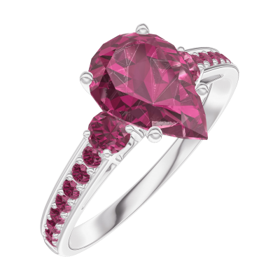 « L'ATELIER » Nº168251Anillo Oro blanco 18 quilates - Rubí Pera 1 quilates - Piedras laterales Rubí - Engastado Rubí