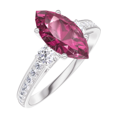 Anillo Oro blanco 18 quilates - Rubí Marquesa 1 quilates - Piedras laterales Diamante - Engastado Diamante
