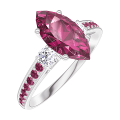 Anillo Oro blanco 18 quilates - Rubí Marquesa 1 quilates - Piedras laterales Diamante - Engastado Rubí