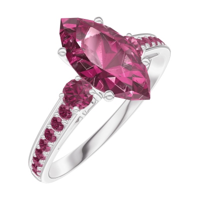 « L'ATELIER » Nº168351Anillo Oro blanco 18 quilates - Rubí Marquesa 1 quilates - Piedras laterales Rubí - Engastado Rubí