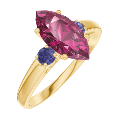 Anillo Oro amarillo 9 quilates - Rubí Marquesa 1 quilates - Piedras laterales Zafiro azul