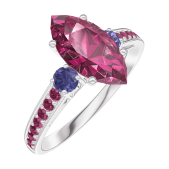 Anillo Oro blanco 9 quilates - Rubí Marquesa 1 quilates - Piedras laterales Zafiro azul - Engastado Rubí