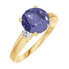 Anillo Oro amarillo 9 quilates - Zafiro azul redondo 1 quilates - Piedras laterales Diamante