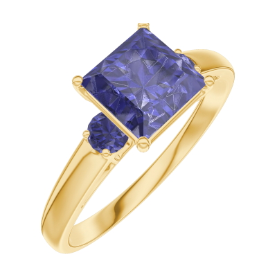« L'ATELIER » Nº168561Anillo Oro amarillo 18 quilates - Zafiro azul Princesa 1 quilates - Piedras laterales Zafiro azul