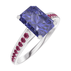 Anillo Oro blanco 18 quilates - Zafiro azul Rectángulo 1 quilates - Engastado Rubí
