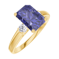 Anillo Oro amarillo 9 quilates - Zafiro azul Rectángulo 1 quilates - Piedras laterales Diamante