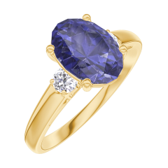 Anillo Oro amarillo 9 quilates - Zafiro azul Ovalo 1 quilates - Piedras laterales Diamante