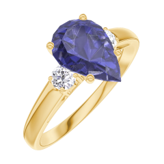 Anillo Oro amarillo 18 quilates - Zafiro azul Pera 1 quilates - Piedras laterales Diamante