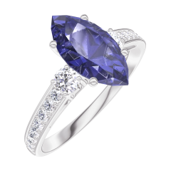 Anillo Oro blanco 18 quilates - Zafiro azul Marquesa 1 quilates - Piedras laterales Diamante - Engastado Diamante