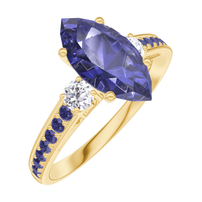 « L'ATELIER » Nº168933Anillo Oro amarillo 18 quilates - Zafiro azul Marquesa 1 quilates - Piedras laterales Diamante - Engastado Zafiro azul