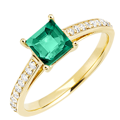 « L'ATELIER » N.º 169106Anillo Oro amarillo 9 quilates - Esmeralda Princesa 1 quilates - Engastado Diamante