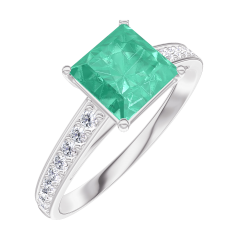 Anillo Oro blanco 18 quilates - Esmeralda Princesa 1 quilates - Engastado Diamante