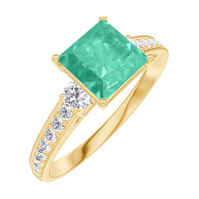 « L'ATELIER » Nº169126Anillo Oro amarillo 9 quilates - Esmeralda Princesa 1 quilates - Piedras laterales Diamante - Engastado Diamante