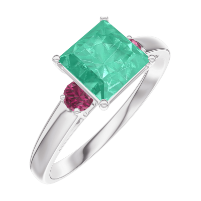 « L'ATELIER » Nº169143Anillo Oro blanco 18 quilates - Esmeralda Princesa 1 quilates - Piedras laterales Rubí