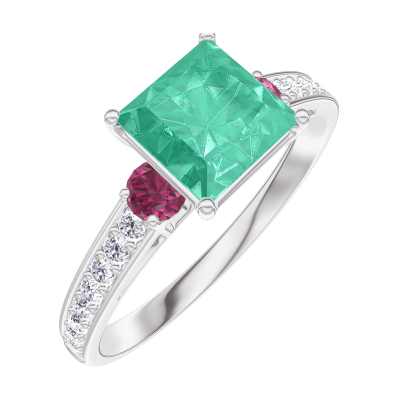 « L'ATELIER » Nº169147Anillo Oro blanco 18 quilates - Esmeralda Princesa 1 quilates - Piedras laterales Rubí - Engastado Diamante